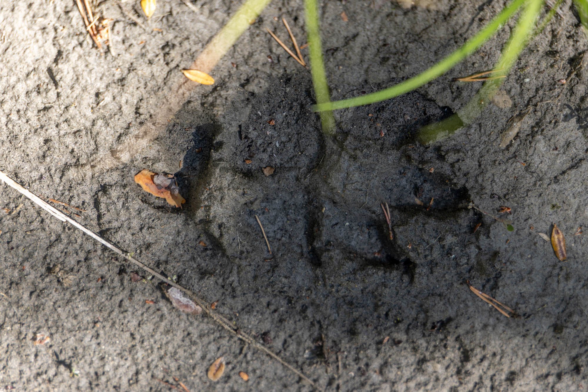 Nous décidons alors d’aller jeter un coup d’œil au lit sédimentaire de la rivière qui borde le Camp de Base. Et qu’y découvrons-nous ? de magnifiques empreintes de loup. Et exactement à l’endroit évoqué.