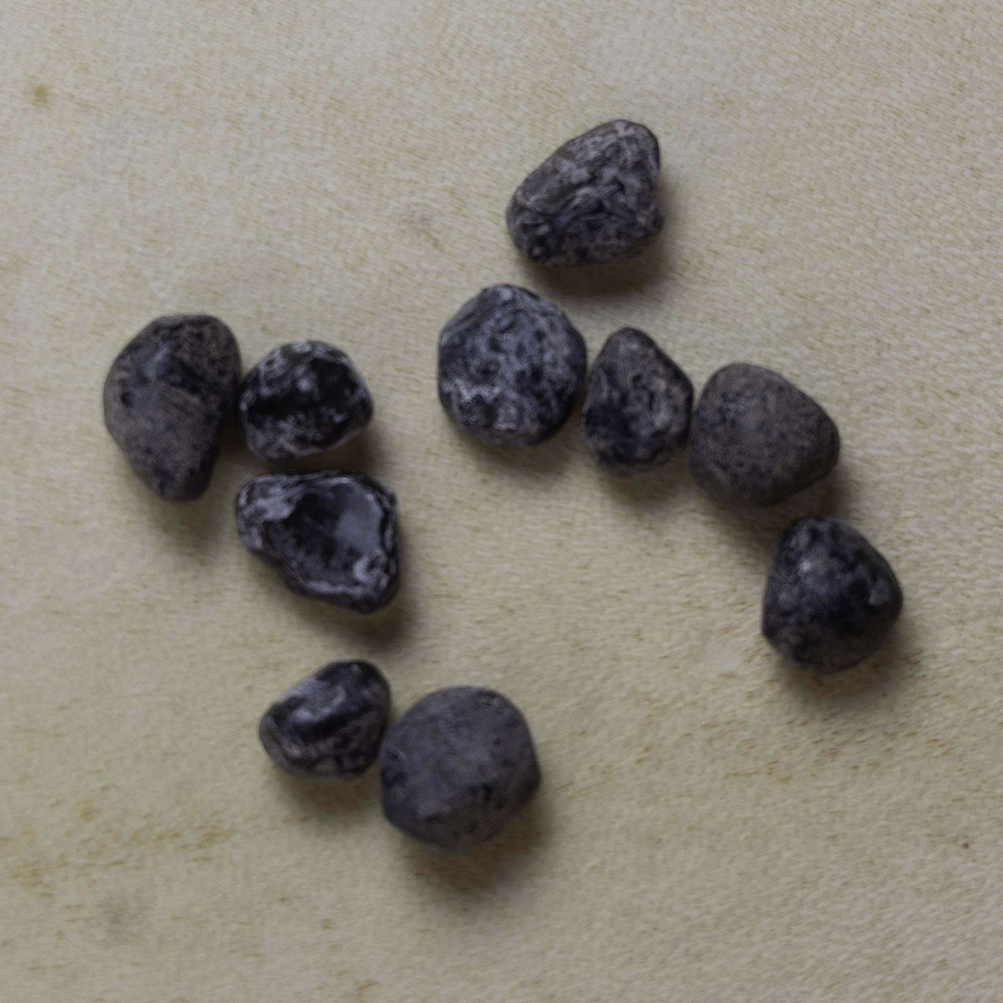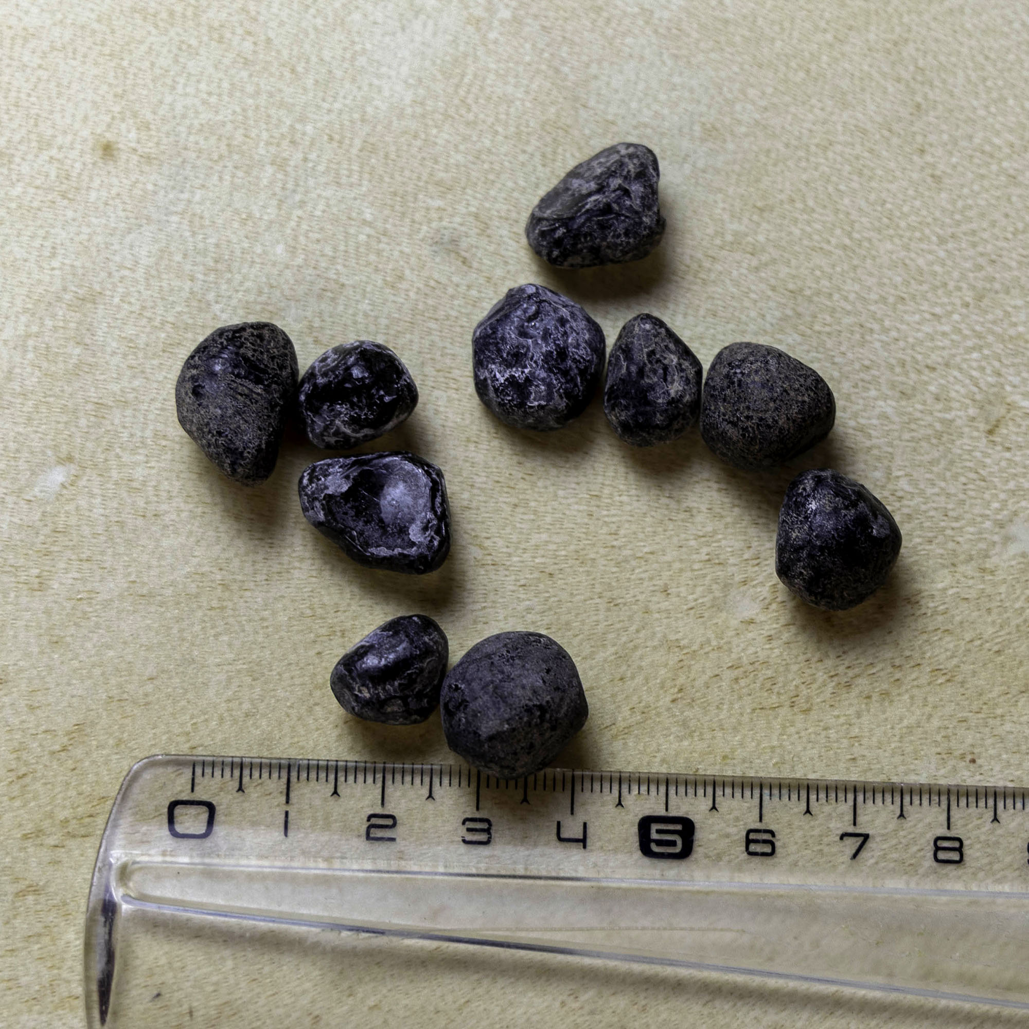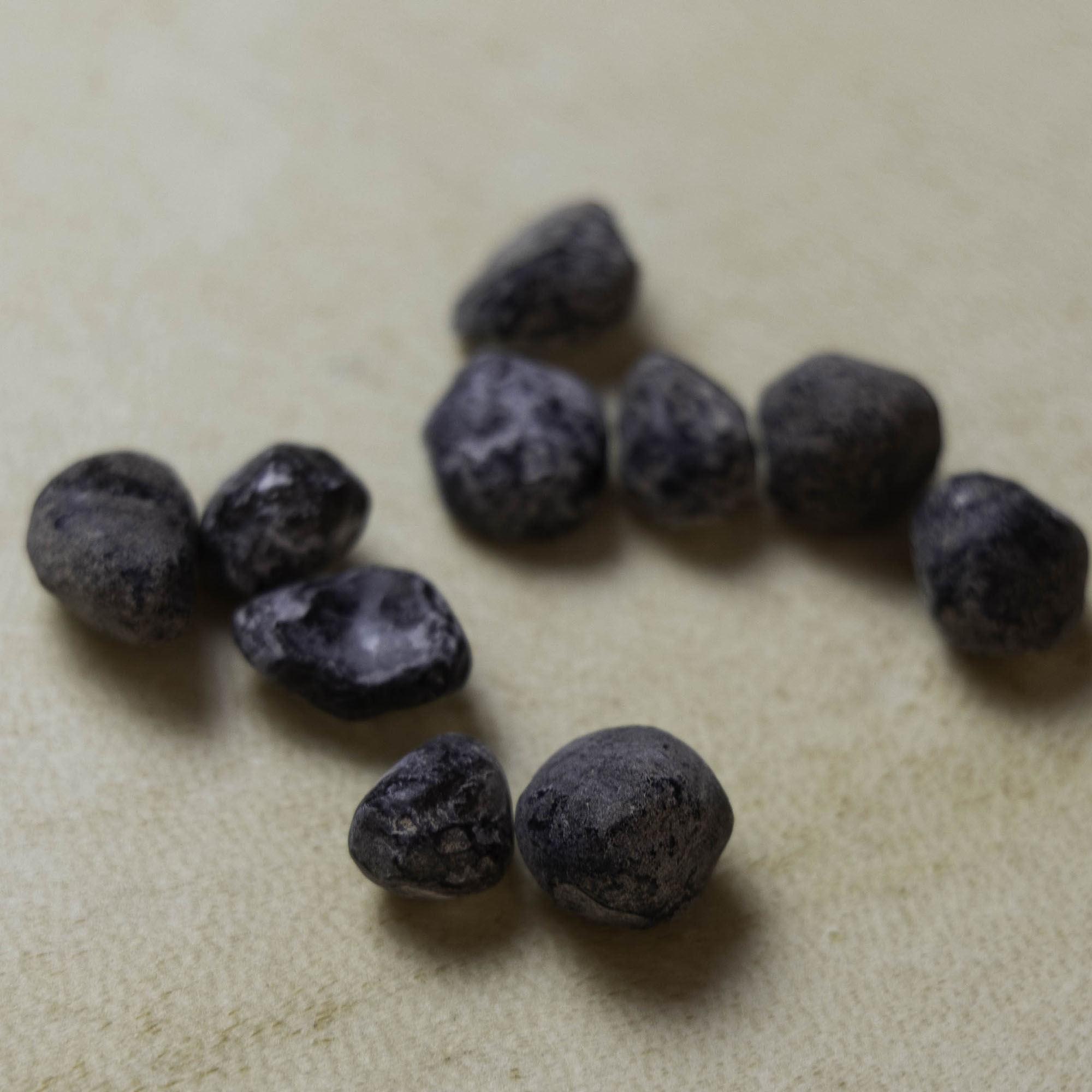 Ces larmes d’Apache proviennent directement du Sud de l’Arizona d’où je les ai ramenées moi-même.Il s’agit d’une variété d’Obsidienne, caractérisée par son aspect translucide, lorsqu’on la place à la lumière.