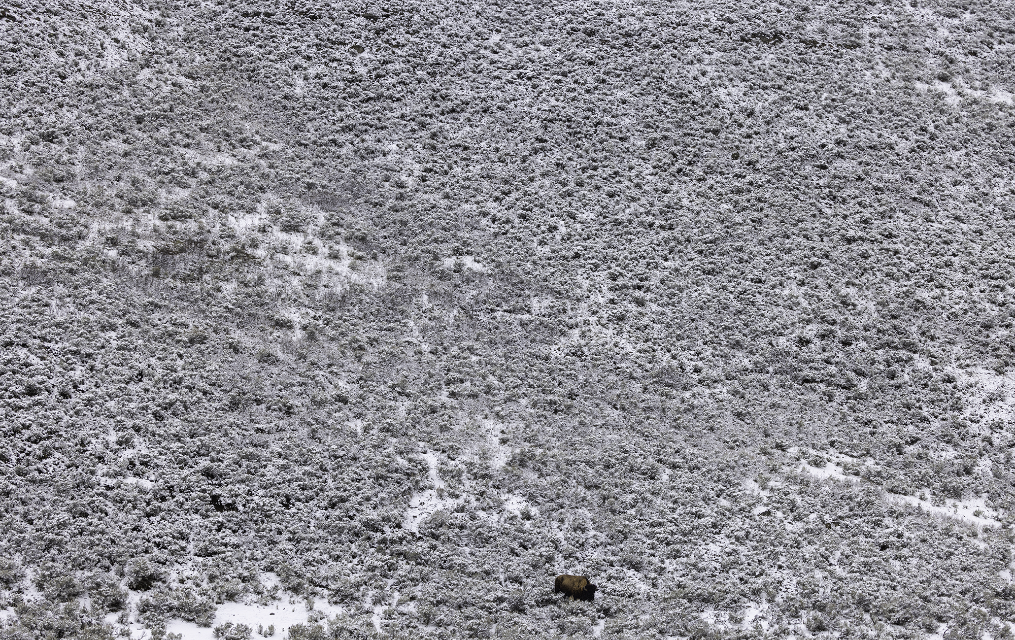 "Bison et Montagne Saupoudrée de Neige" , Yellowstone, lors du voyage de Corine Mystery, en avril 2024.